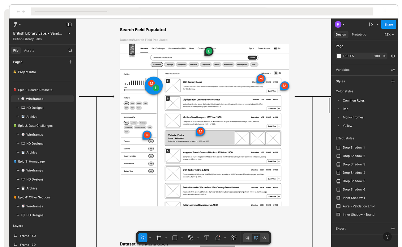 These prototypes were used to present to stakeholders within British Library Labs in order to get buy-in, and were then handed over to the development team with detailed documentation covering every component, interaction pattern, and responsive behavior. The result was an incredibly comprehensive design system that left nothing to interpretation.