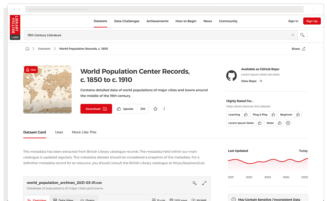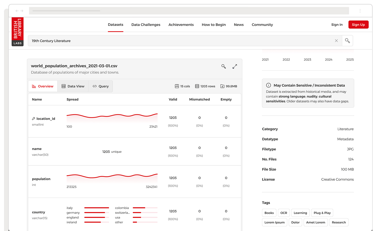 The British Library houses one of the world’s largest archival collections, with millions of items spanning centuries of human knowledge. As the experimental arm of this prestigious institution, British Library Labs is committed to delivering digital tools that serve everyone: from genealogy enthusiasts exploring family history to computational humanities scholars conducting advanced research.